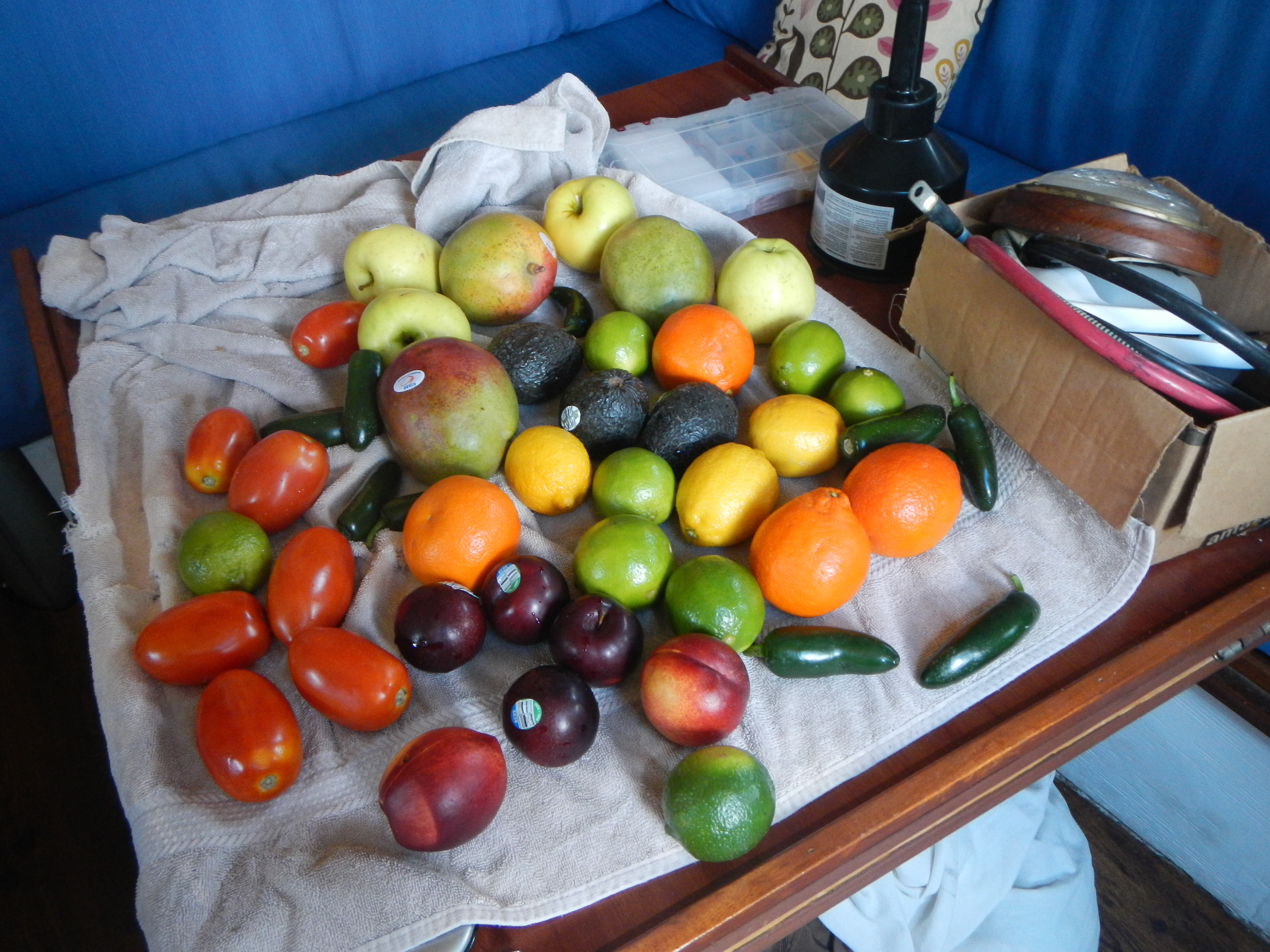 Fruits and VeggiesPreparations have been made. We are fueled up, we have a plethora of produce and my honey do list is the shortest it’s ever been. You can only prepare so much for something until it just has to be done, or attempted that is. No, scratch that, we ARE doing this. Tarpon Basin worked out to be a perfect place to spend a few days getting every last string tied. I even had some time to install our SOS man overboard system that Michael Richie hooked us up with, rebuilt and cleaned the head and installed latches on the cockpit lockers.