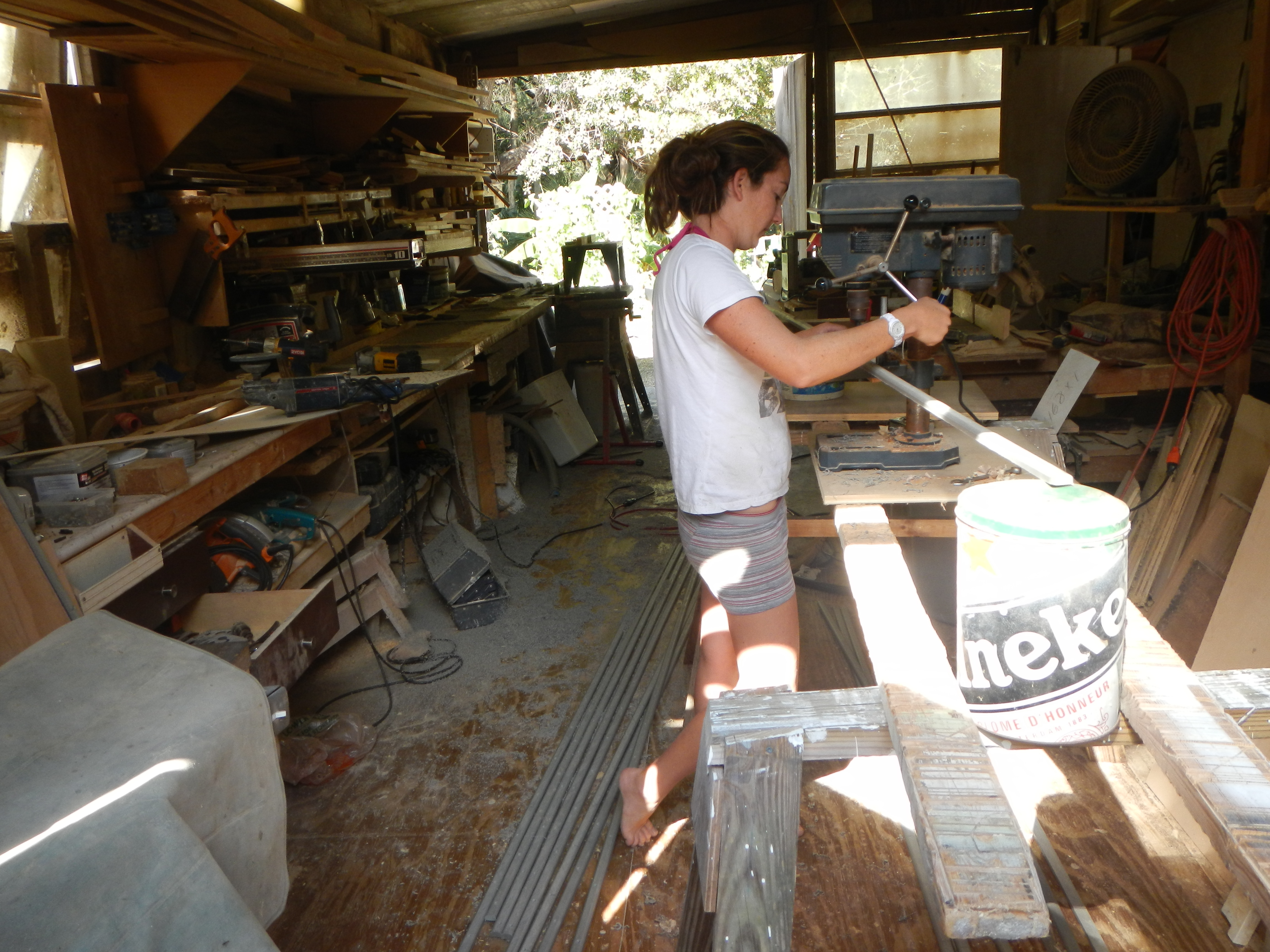 I should be used to the prices for “marine” items by now. I guess I’m still having my mind blown. Our old rub rails were made of aluminum and they were pretty tore up from years of overly rambunctious dock pilings. I went to Marine Connection to price them, and, to put it in text lingo, OMG! I would need 7 lengths of 12 foot aluminum rub rail and they cost $95 each! That’s not happening. Instead Laurel’s dad said we should try the recycled decking material. It is hard, plastic and shouldn’t weather. I went to Lowes and bought two 8 foot stripes for $40. Then, while in the shop we cut them in strips, routored the edges and drilled some counter sunk holes every 6 inches. The rails turned out great and installation was smooth with little dab o