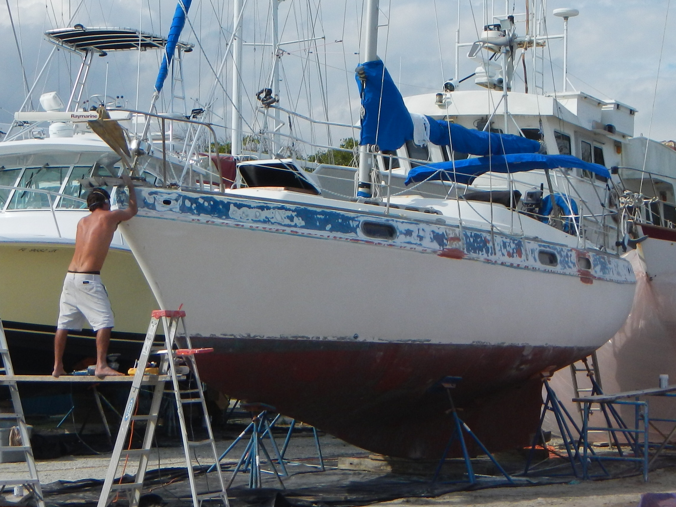 of tape off to reveal our finished look. Sarah, thanks for scraping off our boot stripe. Trace, thanks for helping paint the bottom. All the boatyard people, thanks for all the salty tips and complements. And last but not least, Steve, thanks for all the hours of sanding and hard work you put into P’ Winds. We are grateful that we have some amazing people to share this experience with. This post is for you guys!